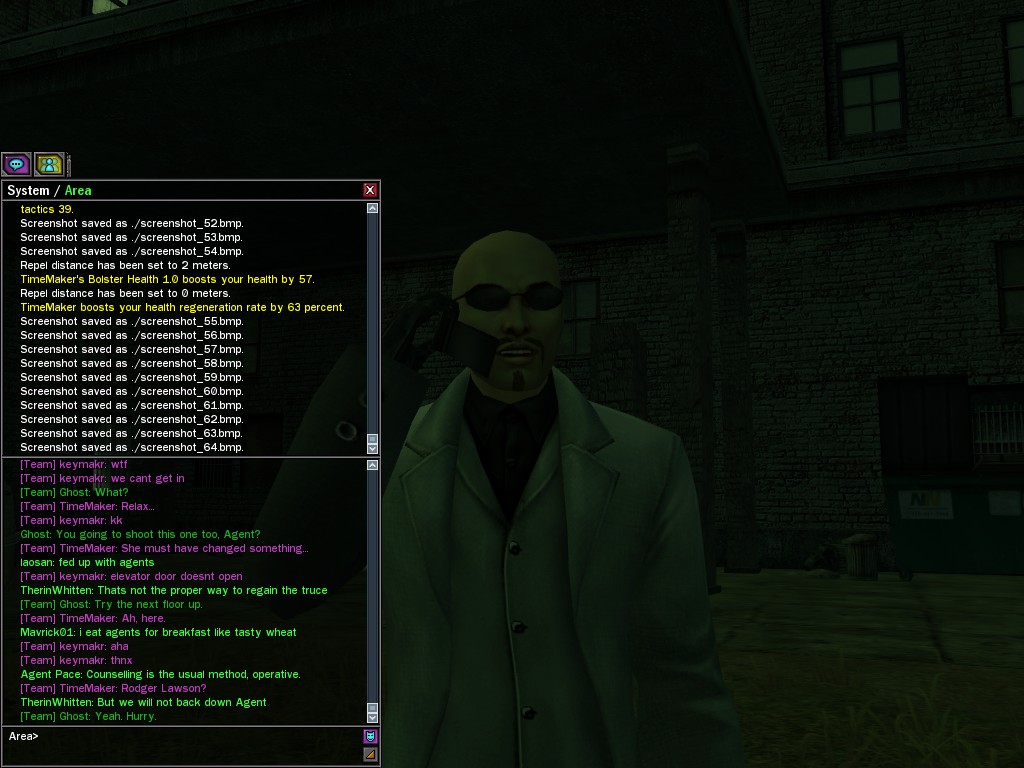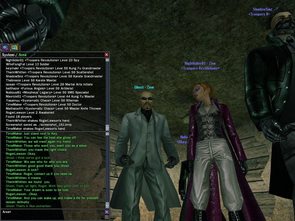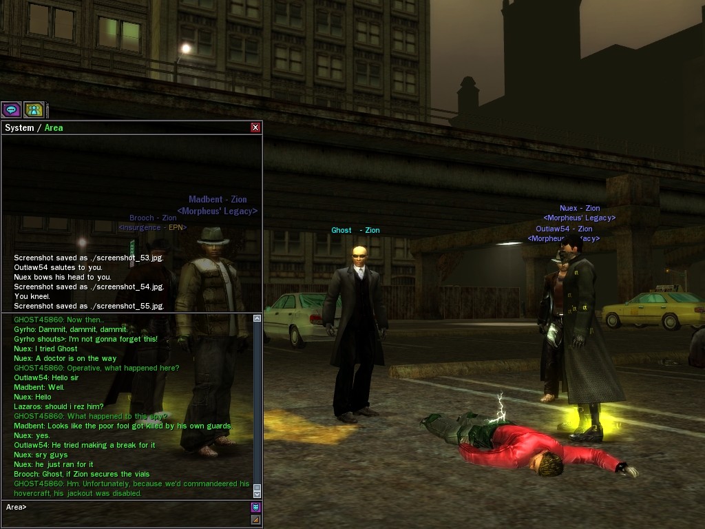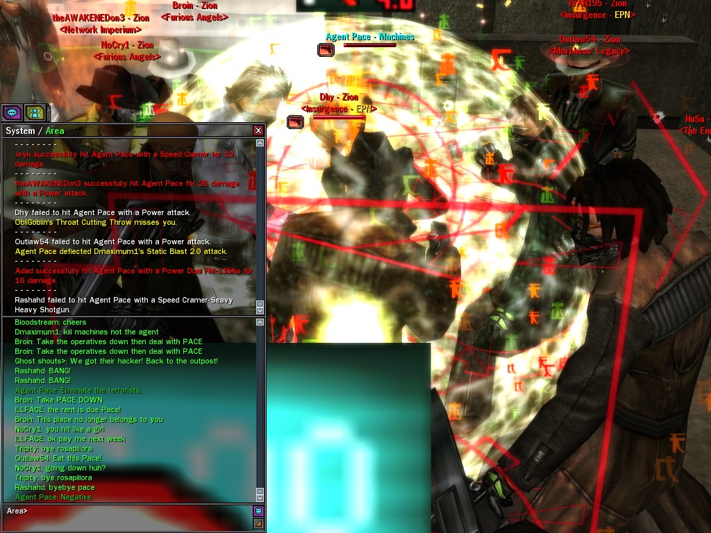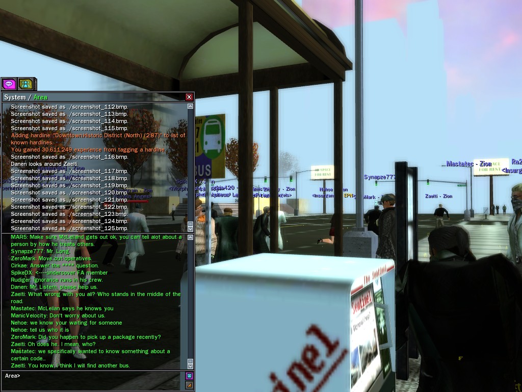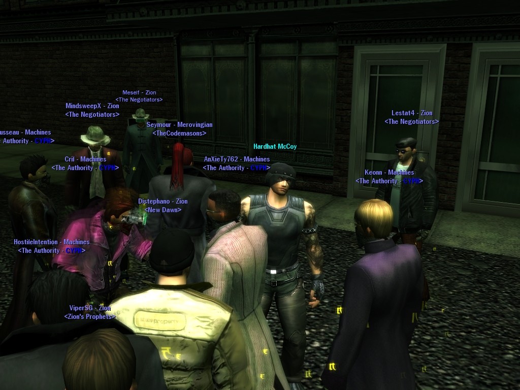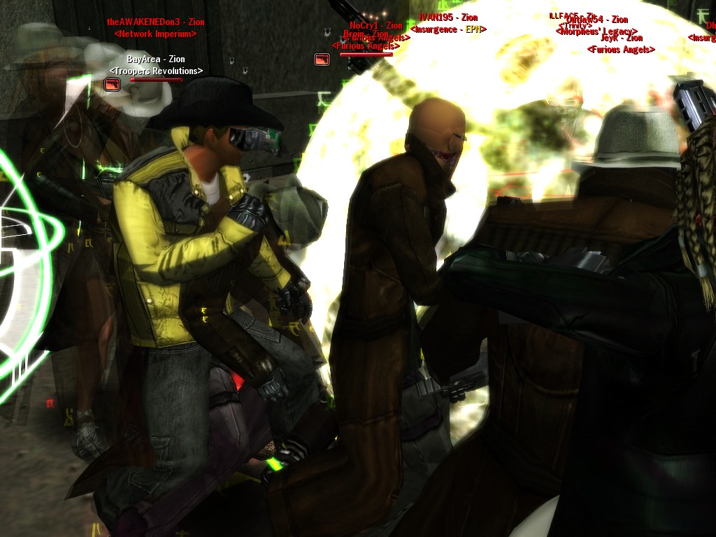 I know it isn't easy painting a target on your forehead just to try to take some heat off your fellow operatives, so I'd like to thank everyone who helped draw fire in Tabor West. Thanks to you, Fenshire, RedBindi, Deffdog, and Suezuki were able to rescue two people who were arrested by the Machines because their names were found in our captured recruiting lists--people whose only "crime" was realizing that something isn't right with what they thought was the world. Ghost