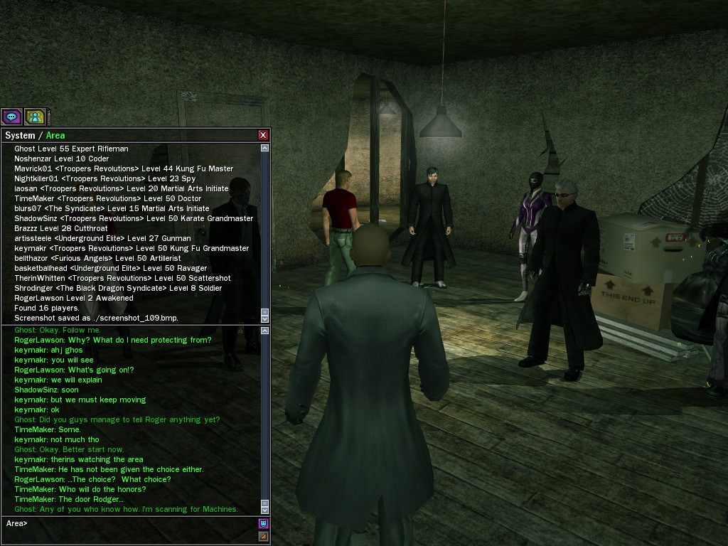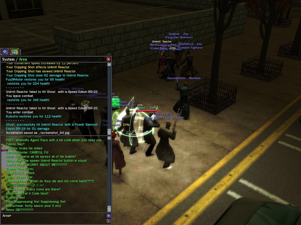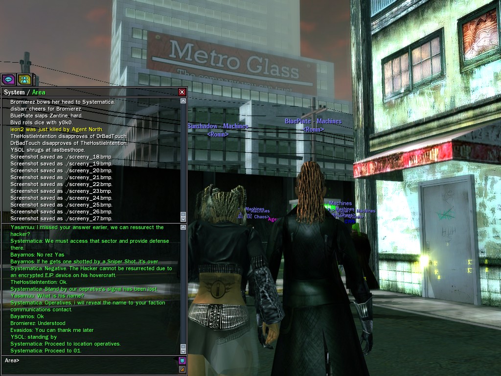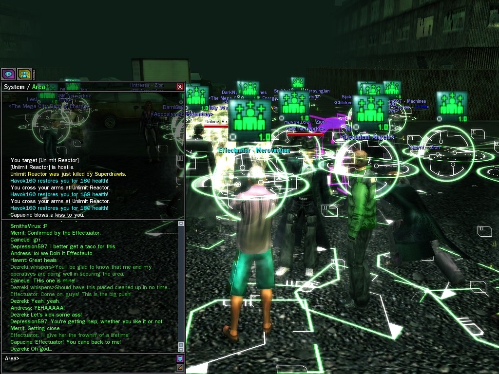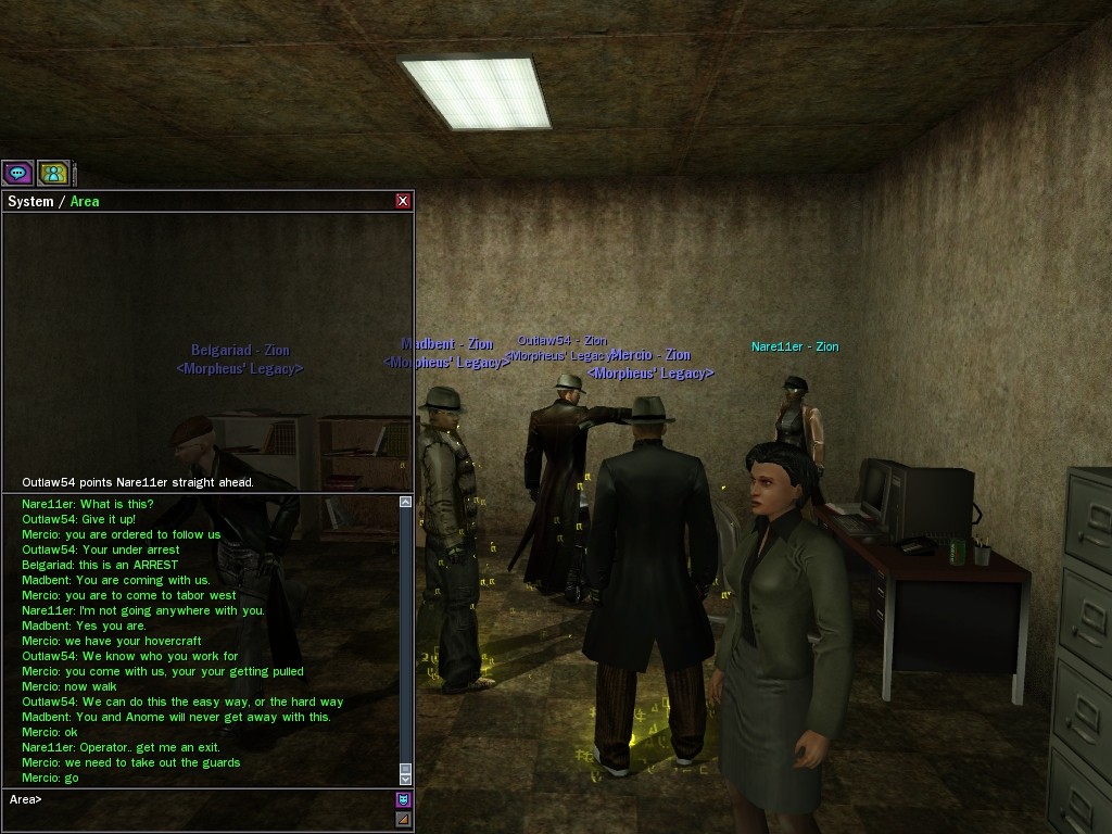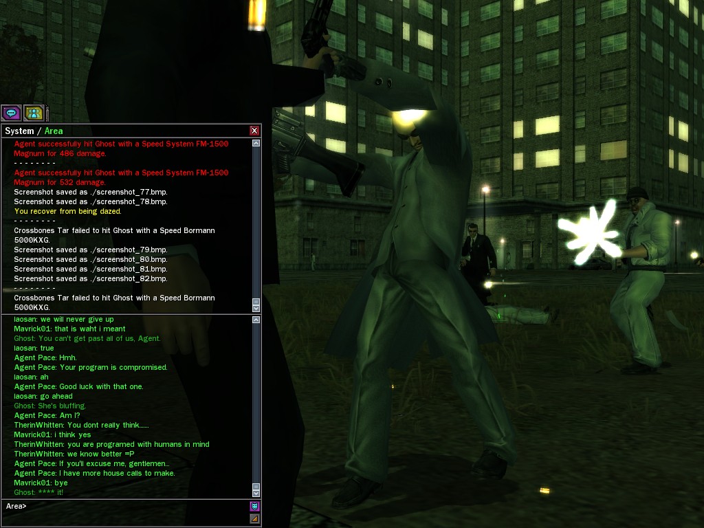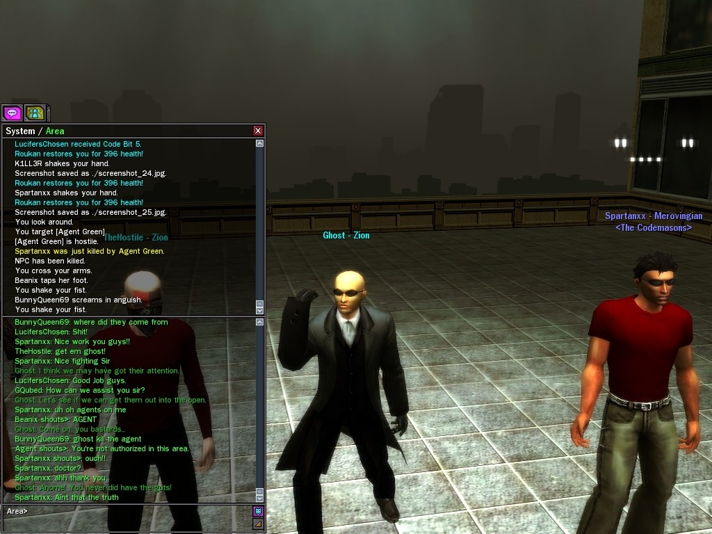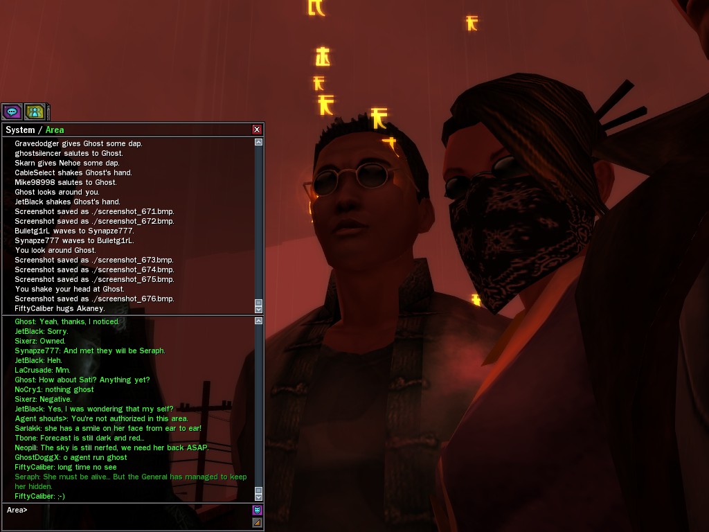 I know it isn't easy painting a target on your forehead just to try to take some heat off your fellow operatives, so I'd like to thank everyone who helped draw fire in Tabor West. Thanks to you, Fenshire, RedBindi, Deffdog, and Suezuki were able to rescue two people who were arrested by the Machines because their names were found in our captured recruiting lists--people whose only "crime" was realizing that something isn't right with what they thought was the world. Ghost