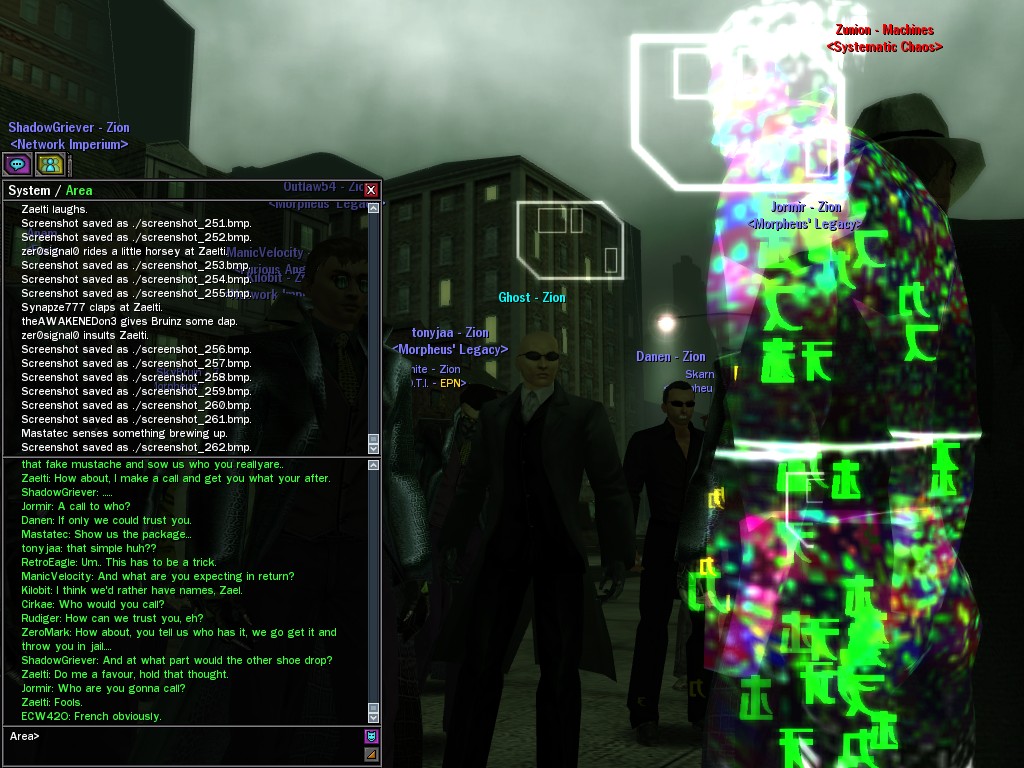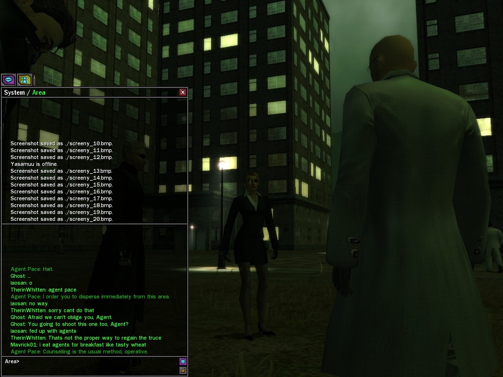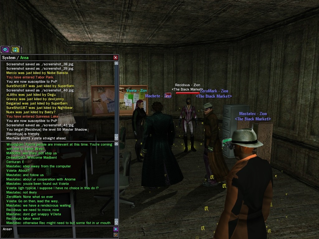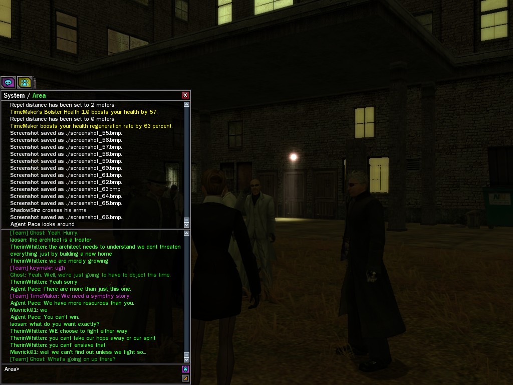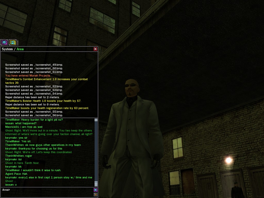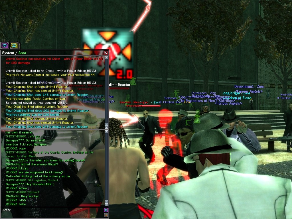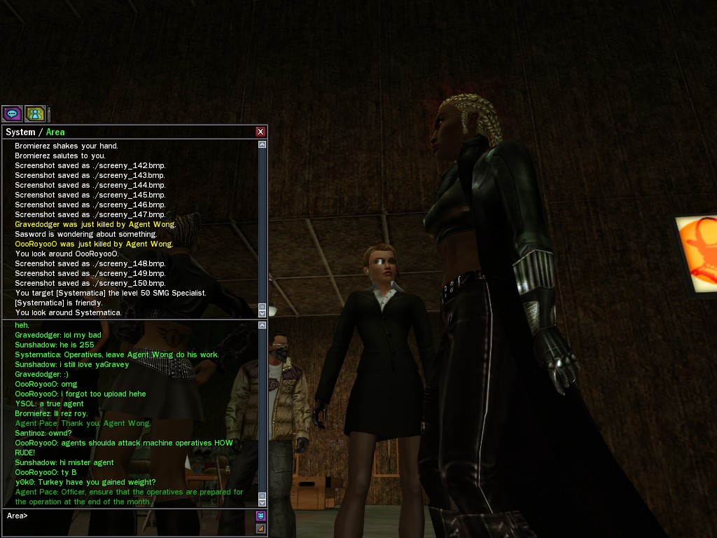 I know it isn't easy painting a target on your forehead just to try to take some heat off your fellow operatives, so I'd like to thank everyone who helped draw fire in Tabor West. Thanks to you, Fenshire, RedBindi, Deffdog, and Suezuki were able to rescue two people who were arrested by the Machines because their names were found in our captured recruiting lists--people whose only "crime" was realizing that something isn't right with what they thought was the world. Ghost