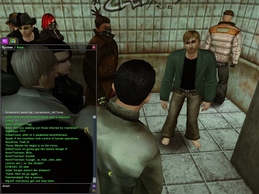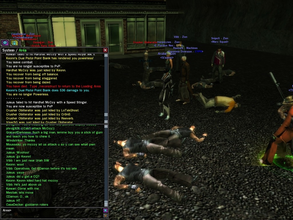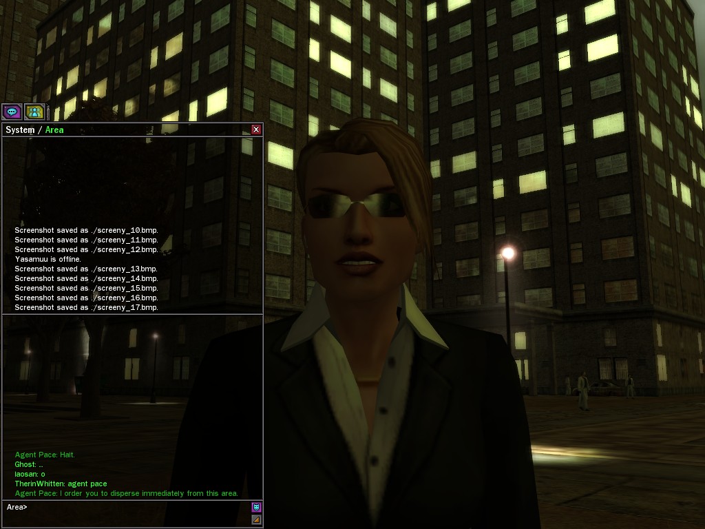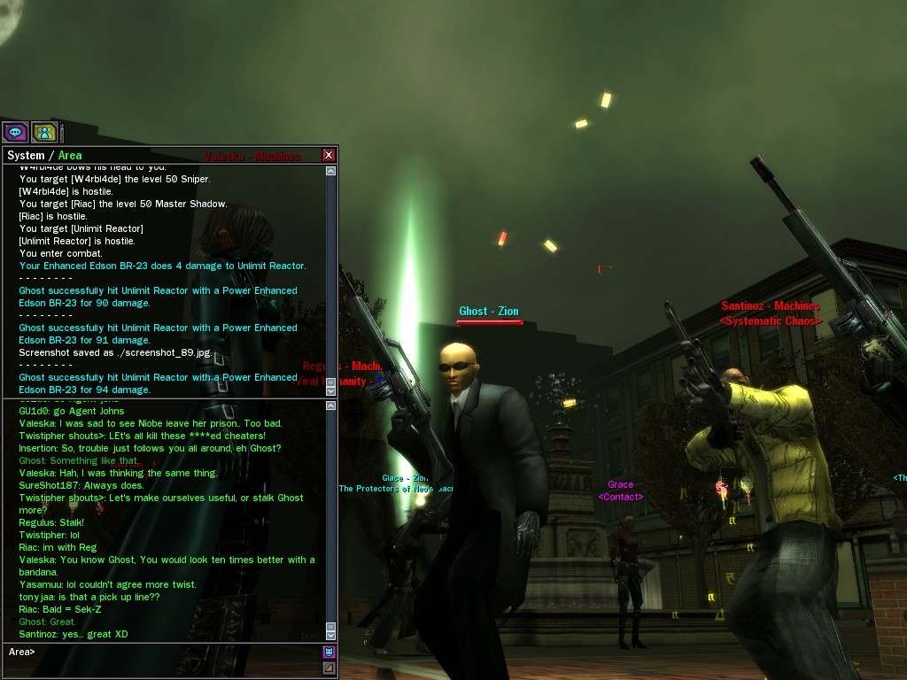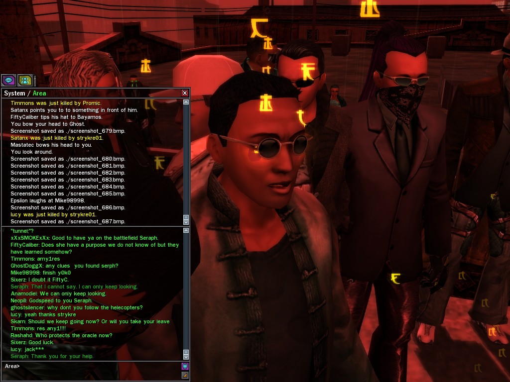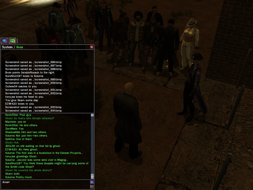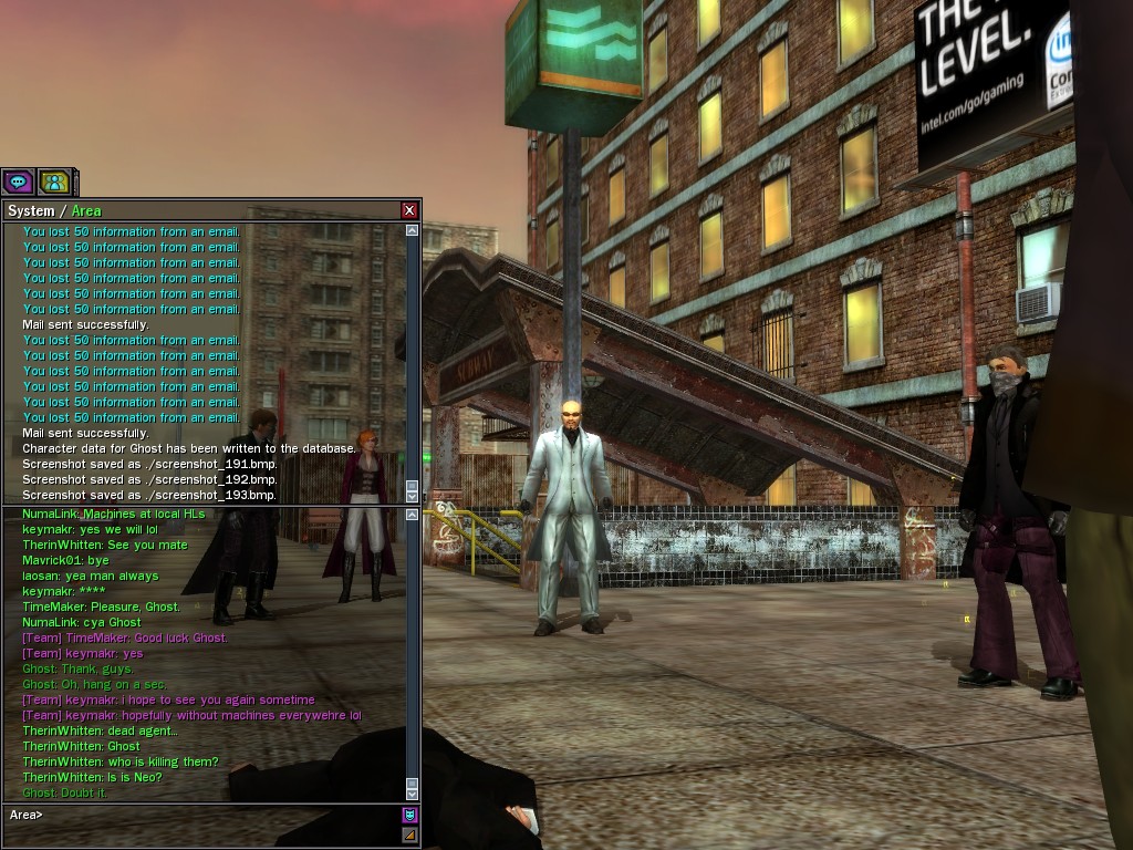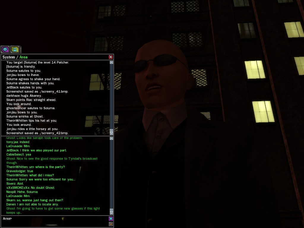 I know it isn't easy painting a target on your forehead just to try to take some heat off your fellow operatives, so I'd like to thank everyone who helped draw fire in Tabor West. Thanks to you, Fenshire, RedBindi, Deffdog, and Suezuki were able to rescue two people who were arrested by the Machines because their names were found in our captured recruiting lists--people whose only "crime" was realizing that something isn't right with what they thought was the world. Ghost
