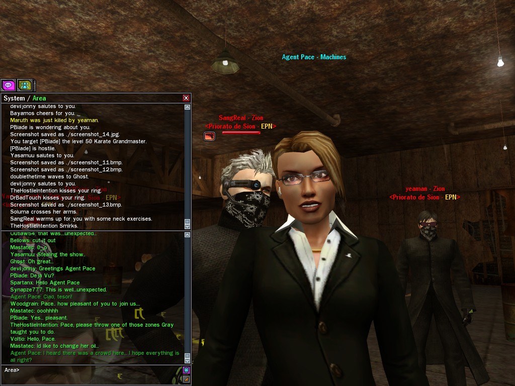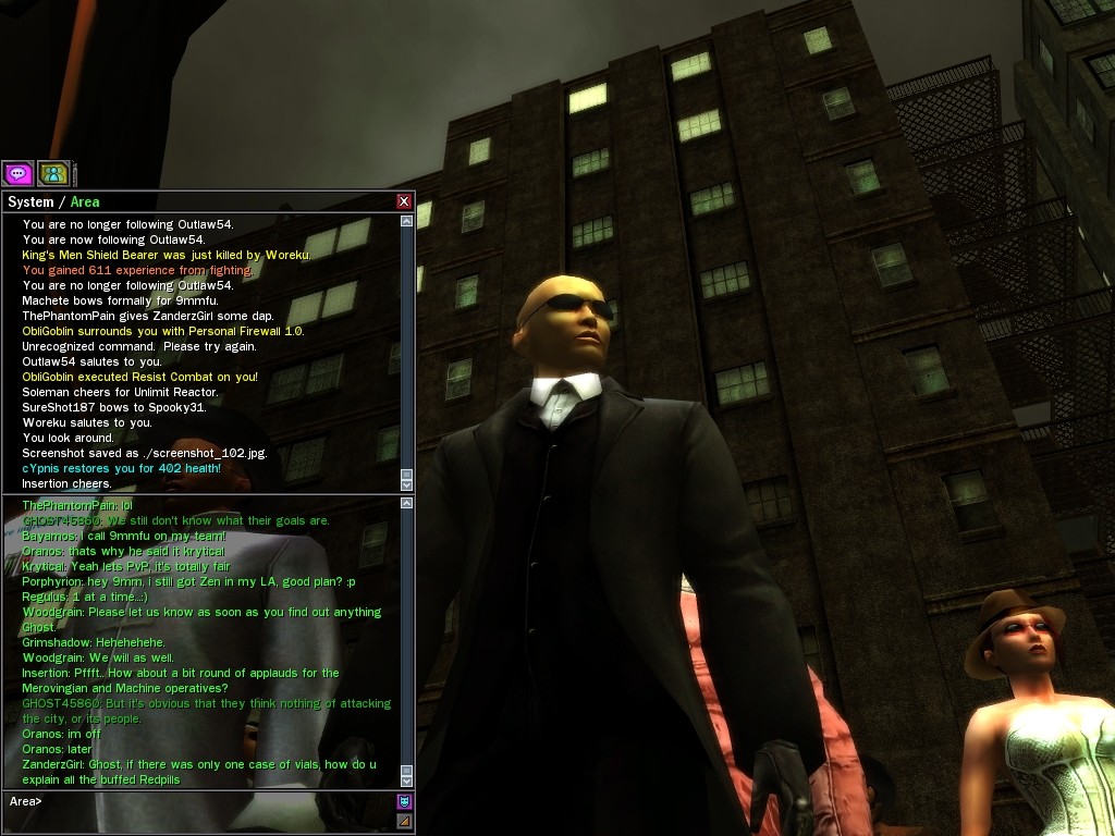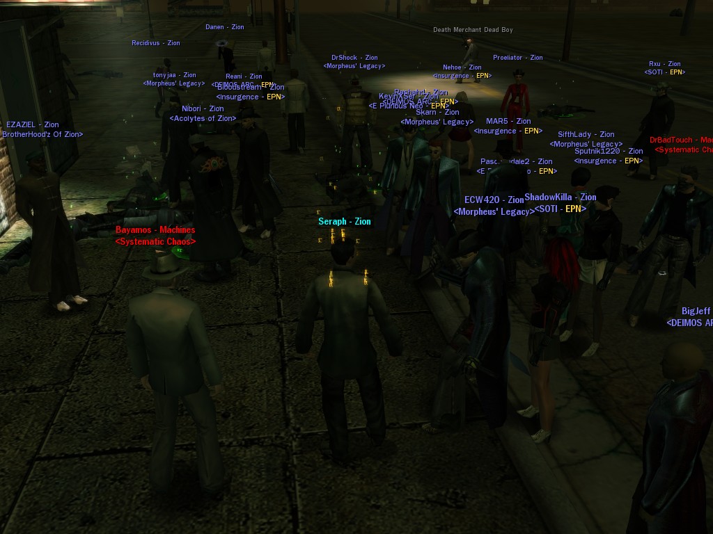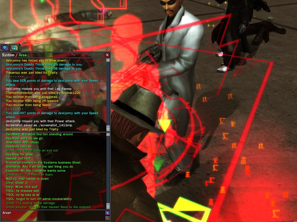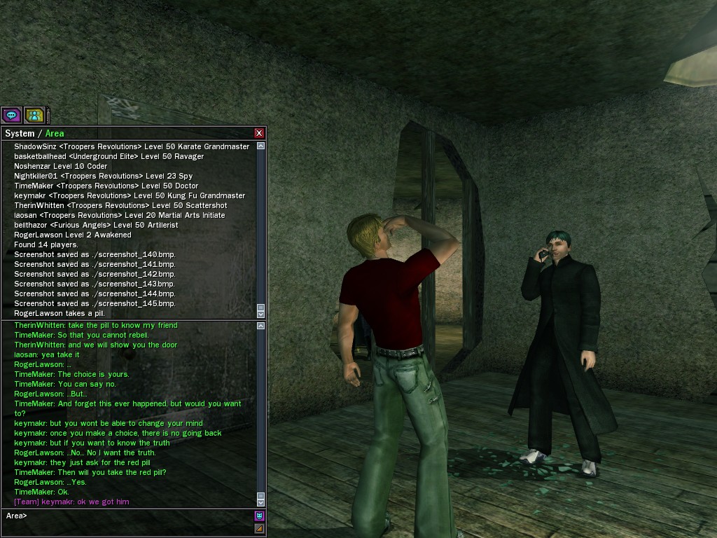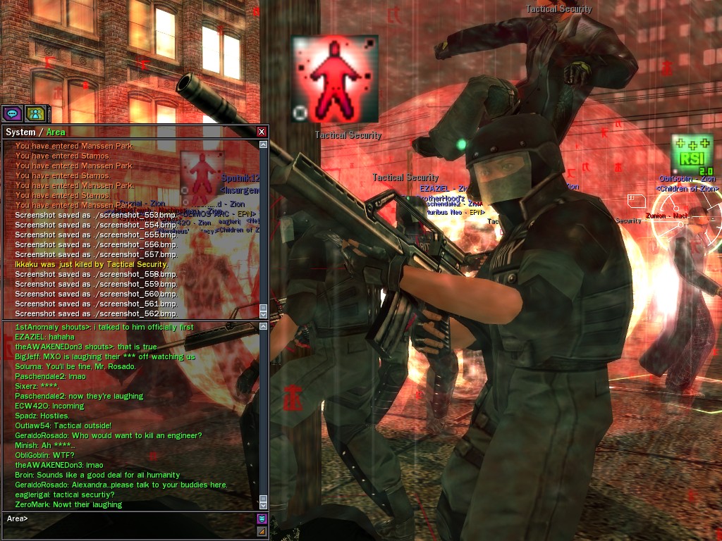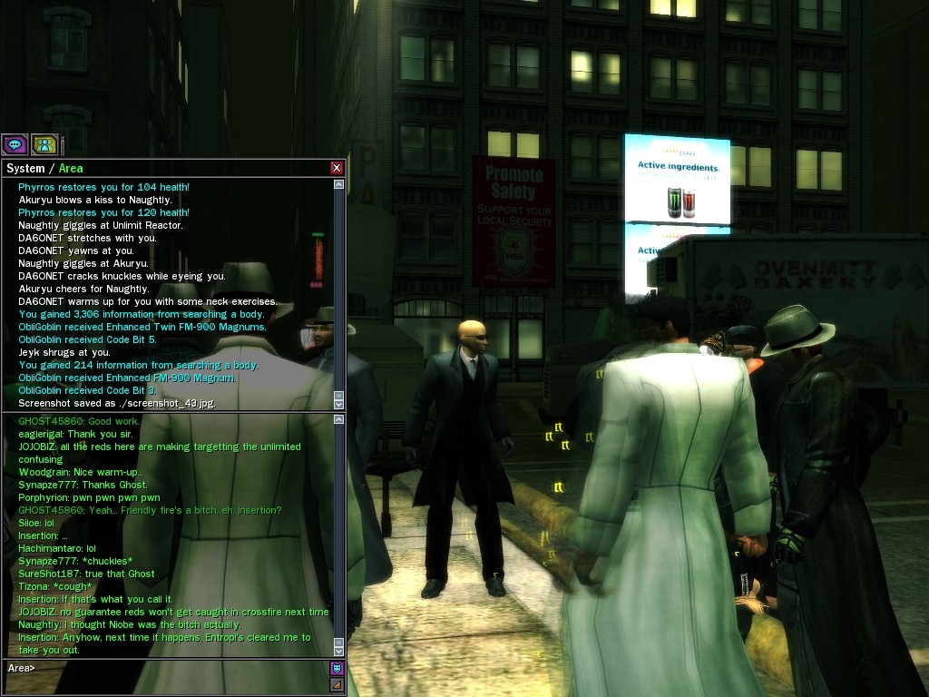I know it isn't easy painting a target on your forehead just to try to take some heat off your fellow operatives, so I'd like to thank everyone who helped draw fire in Tabor West. Thanks to you, Fenshire, RedBindi, Deffdog, and Suezuki were able to rescue two people who were arrested by the Machines because their names were found in our captured recruiting lists--people whose only "crime" was realizing that something isn't right with what they thought was the world. Ghost