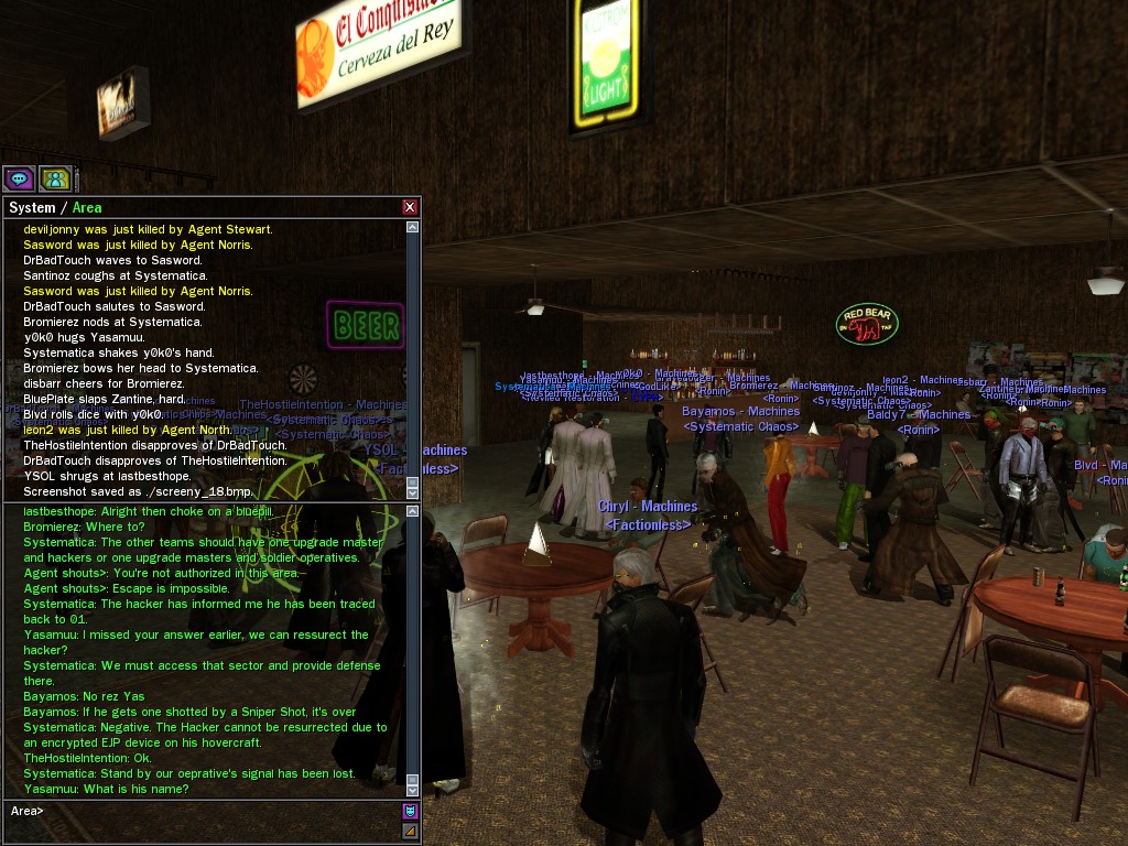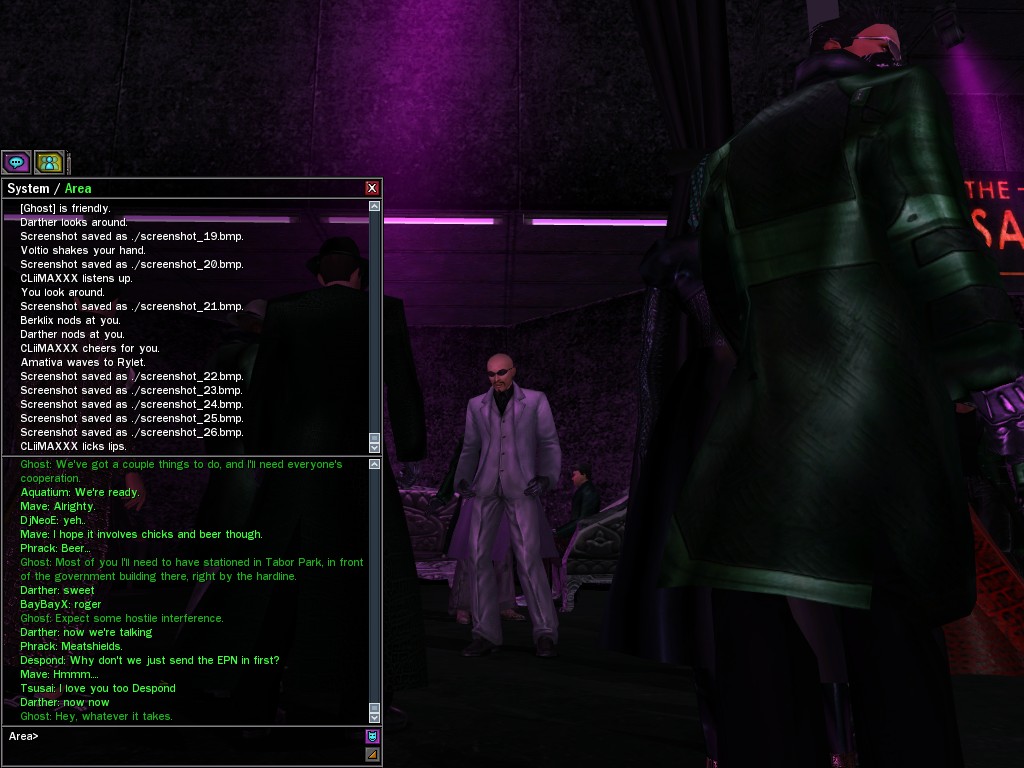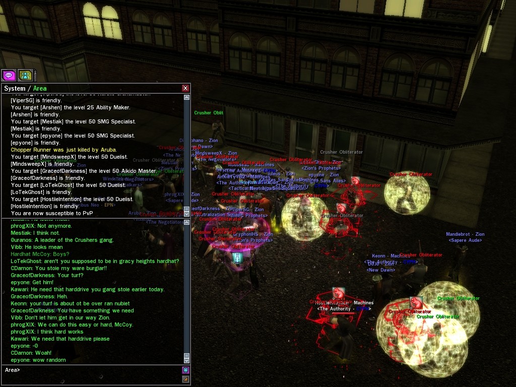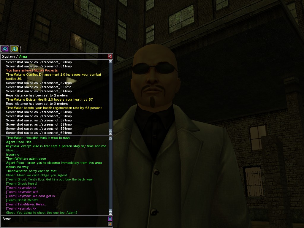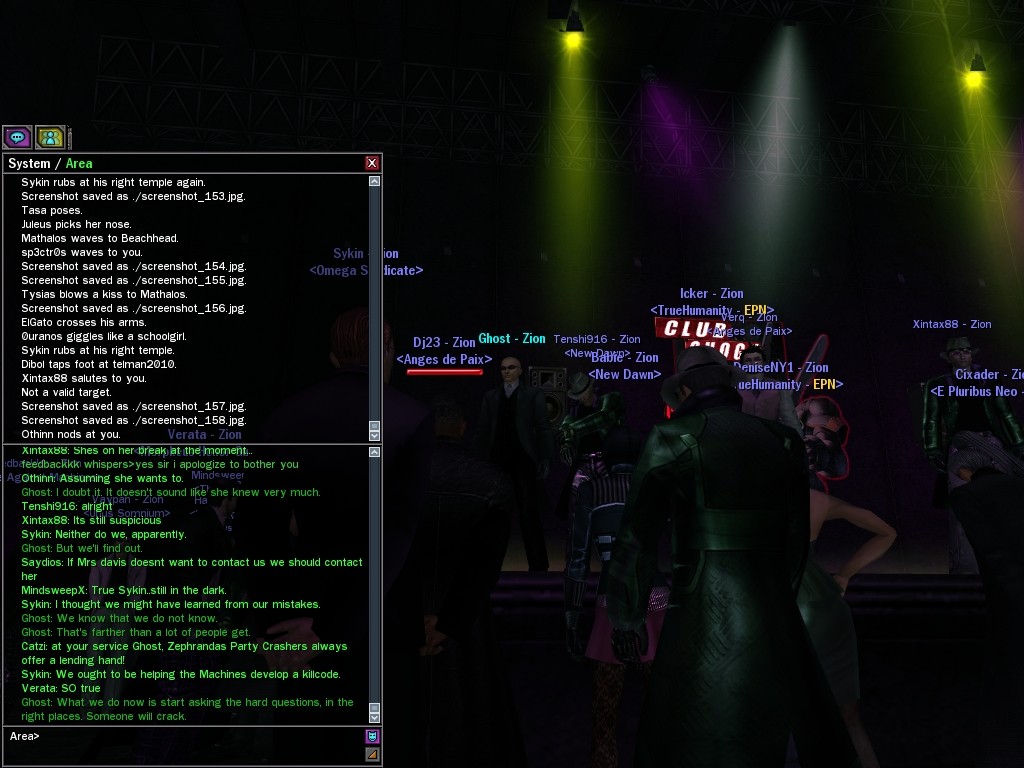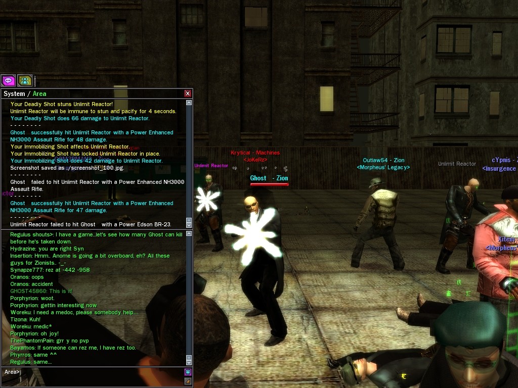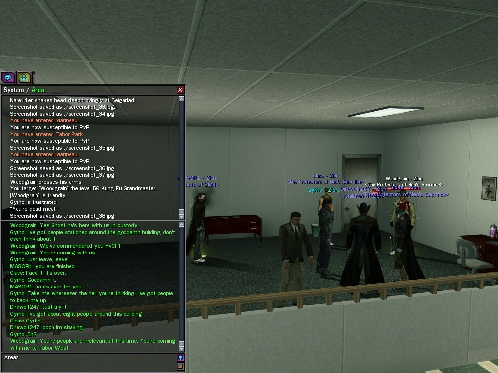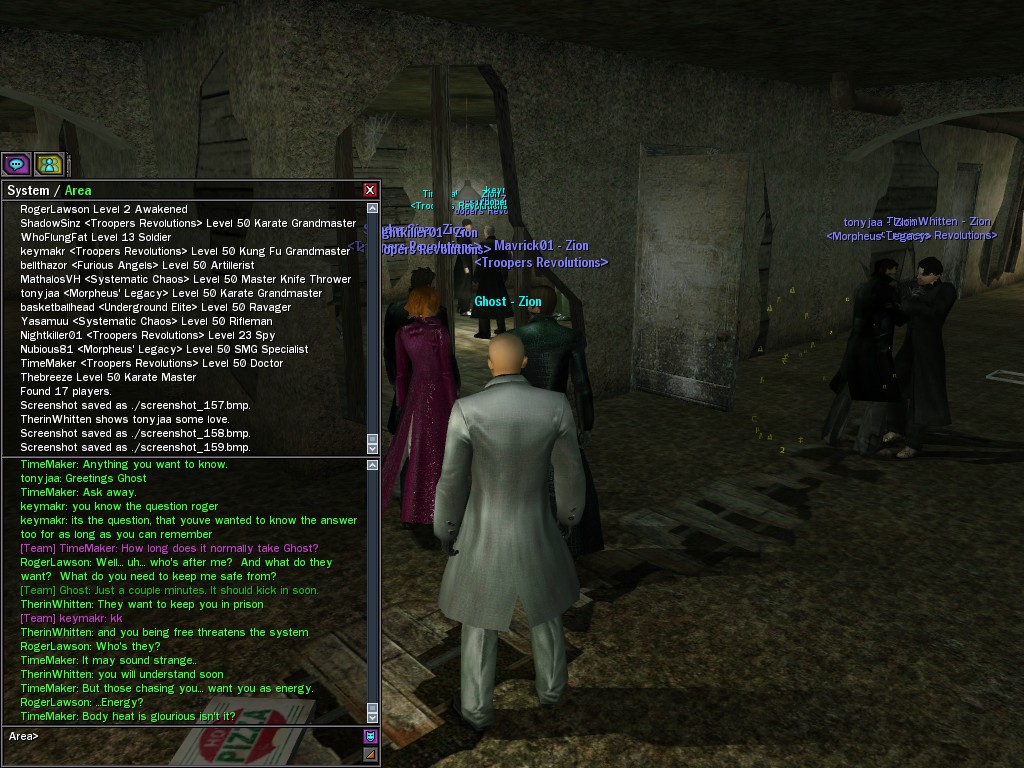 I know it isn't easy painting a target on your forehead just to try to take some heat off your fellow operatives, so I'd like to thank everyone who helped draw fire in Tabor West. Thanks to you, Fenshire, RedBindi, Deffdog, and Suezuki were able to rescue two people who were arrested by the Machines because their names were found in our captured recruiting lists--people whose only "crime" was realizing that something isn't right with what they thought was the world. Ghost
