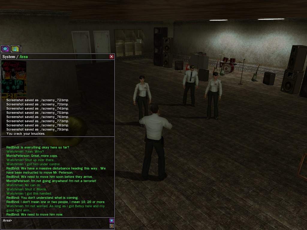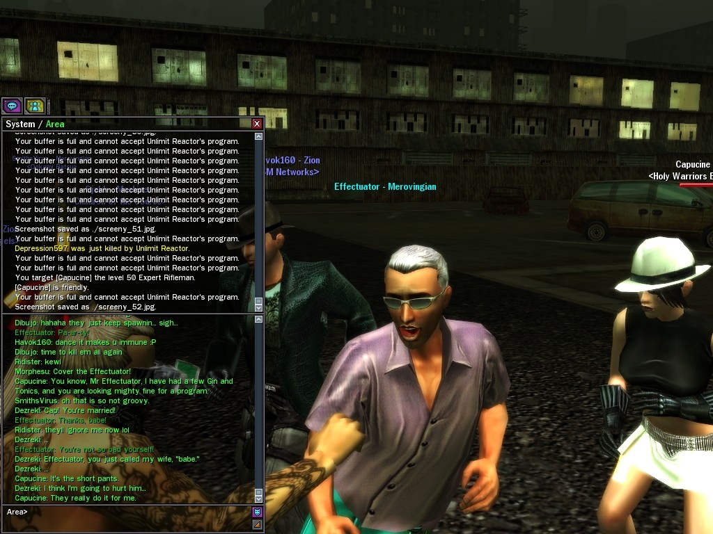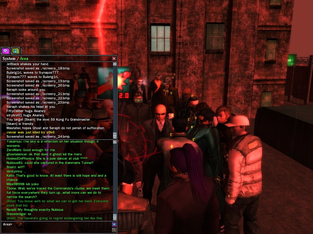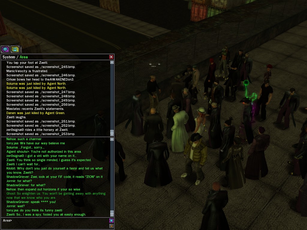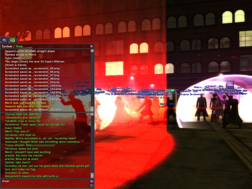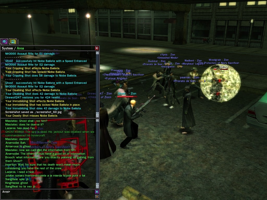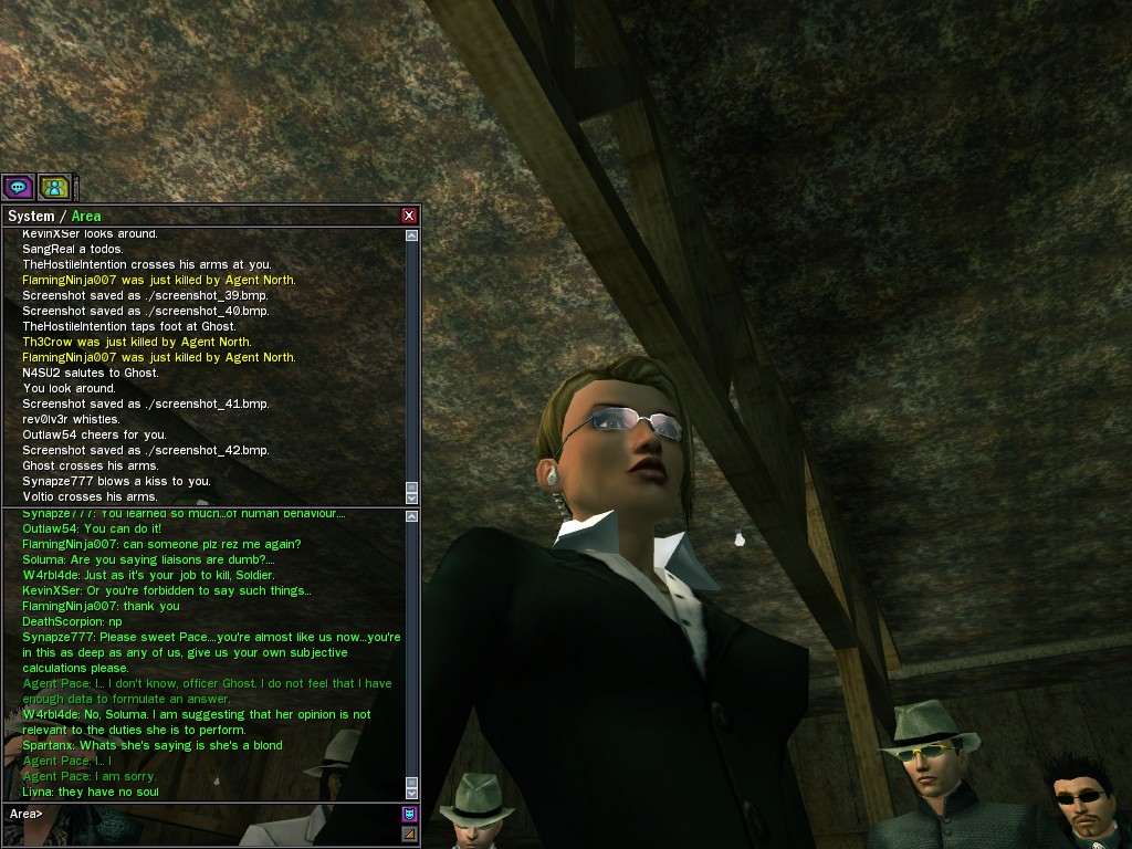 I know it isn't easy painting a target on your forehead just to try to take some heat off your fellow operatives, so I'd like to thank everyone who helped draw fire in Tabor West. Thanks to you, Fenshire, RedBindi, Deffdog, and Suezuki were able to rescue two people who were arrested by the Machines because their names were found in our captured recruiting lists--people whose only "crime" was realizing that something isn't right with what they thought was the world. Ghost