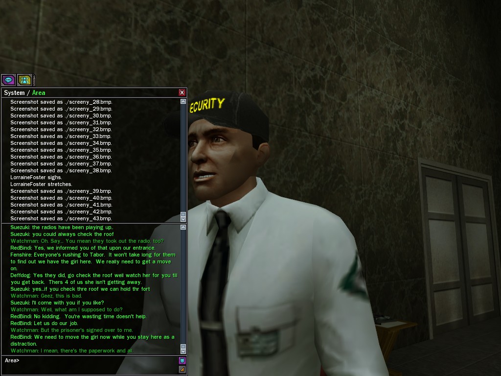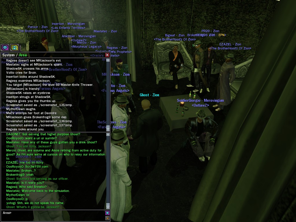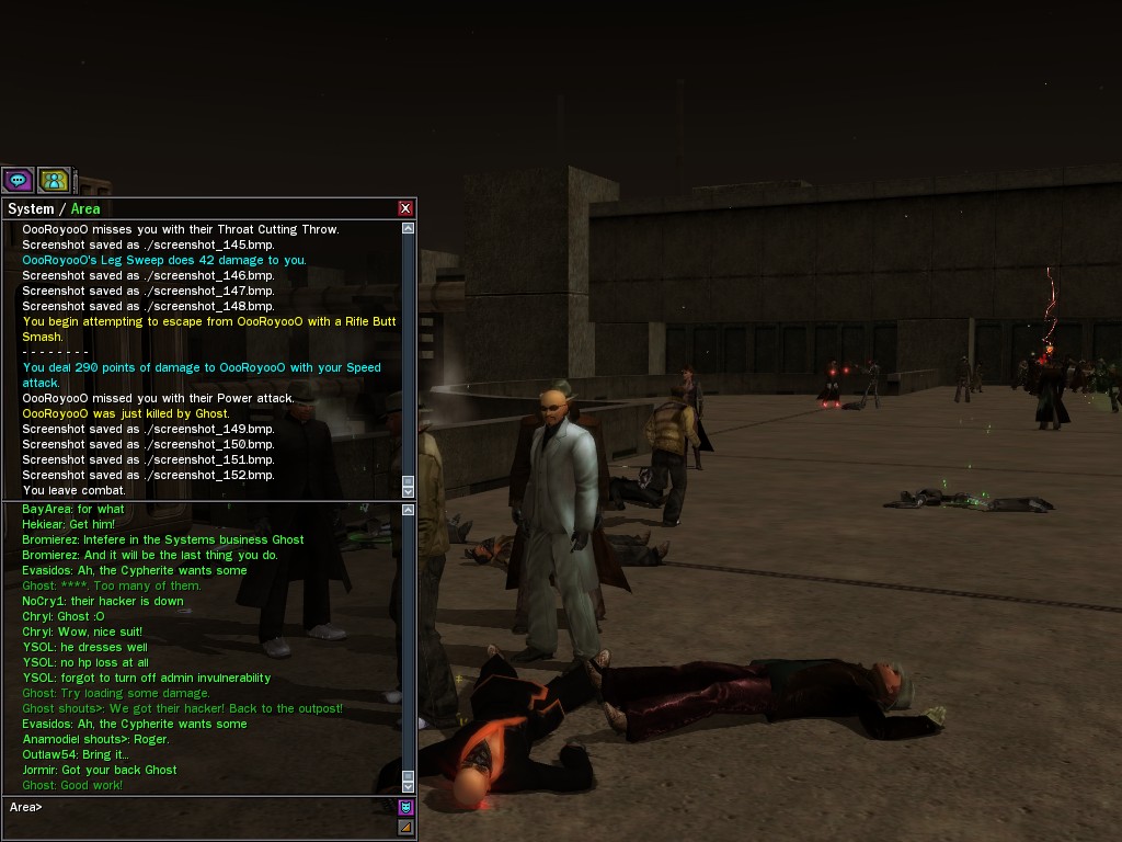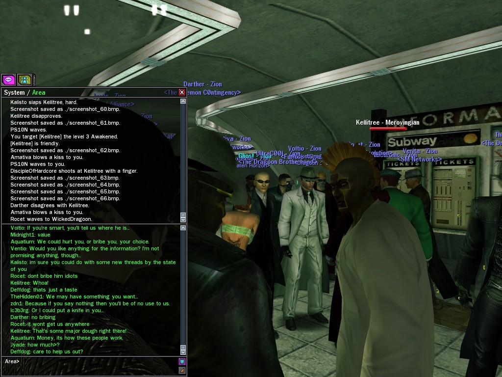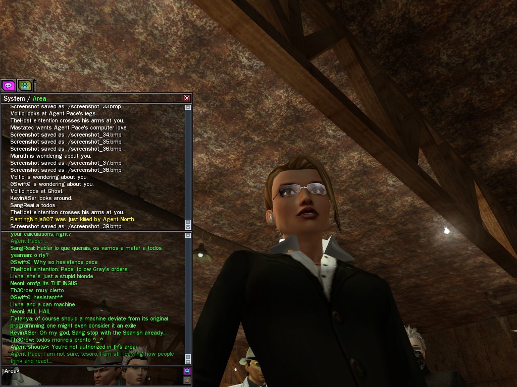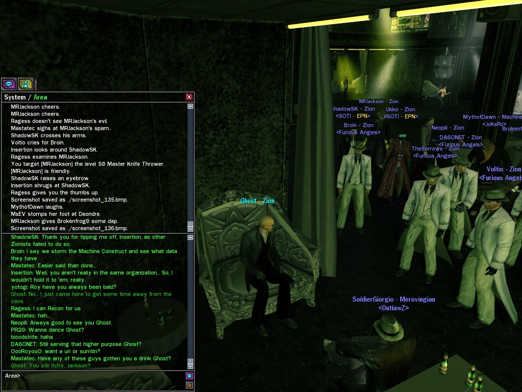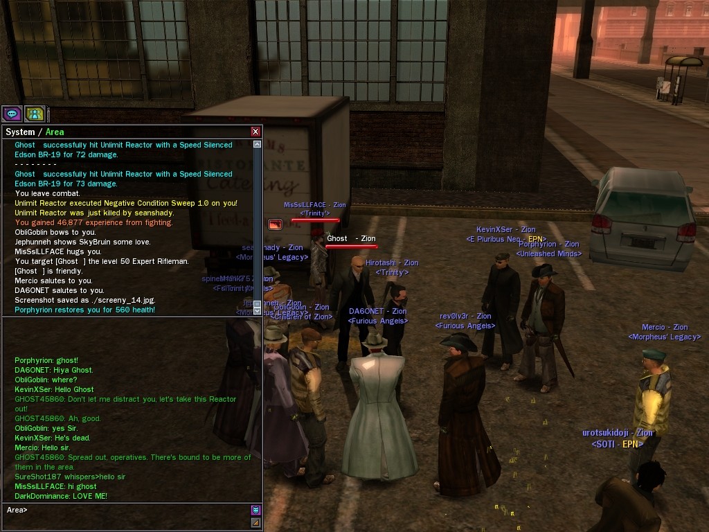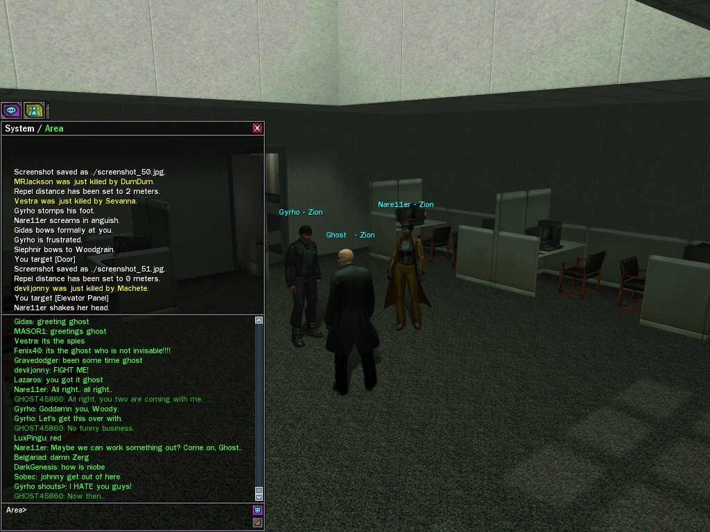 I know it isn't easy painting a target on your forehead just to try to take some heat off your fellow operatives, so I'd like to thank everyone who helped draw fire in Tabor West. Thanks to you, Fenshire, RedBindi, Deffdog, and Suezuki were able to rescue two people who were arrested by the Machines because their names were found in our captured recruiting lists--people whose only "crime" was realizing that something isn't right with what they thought was the world. Ghost
