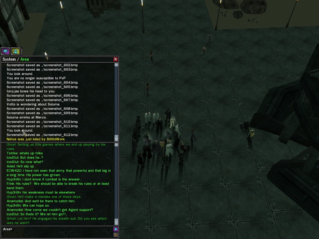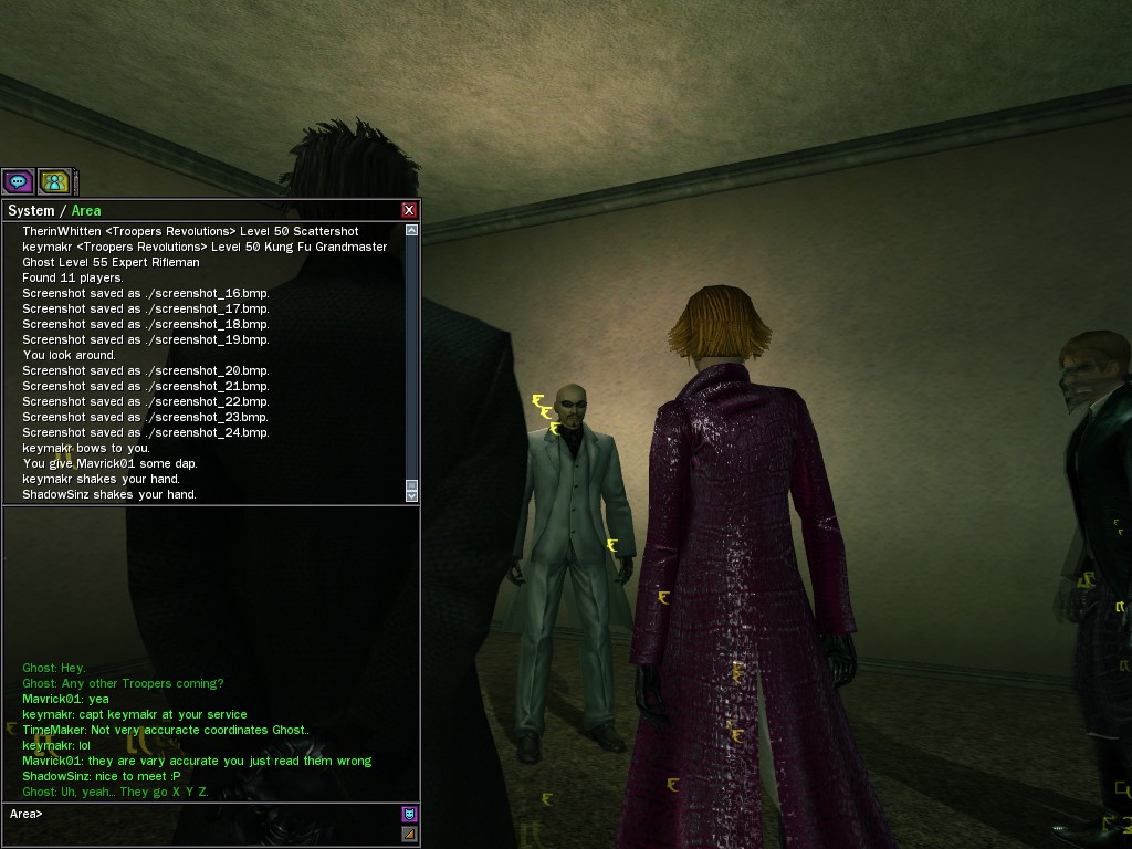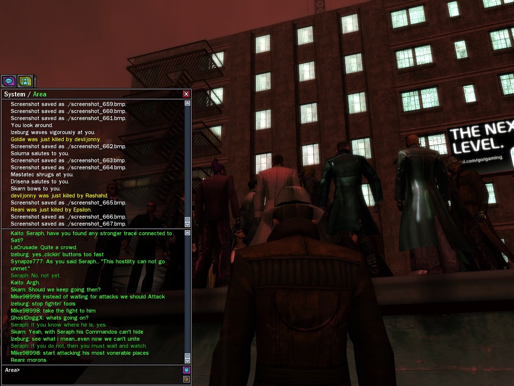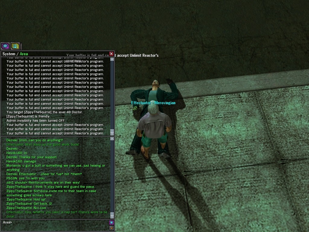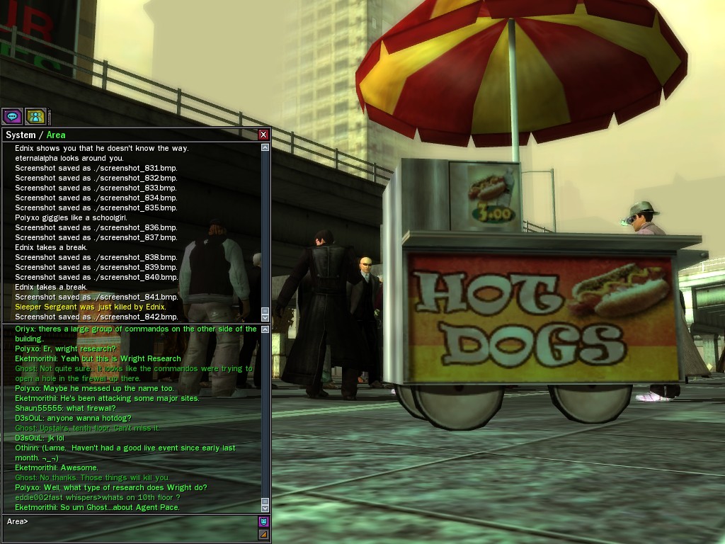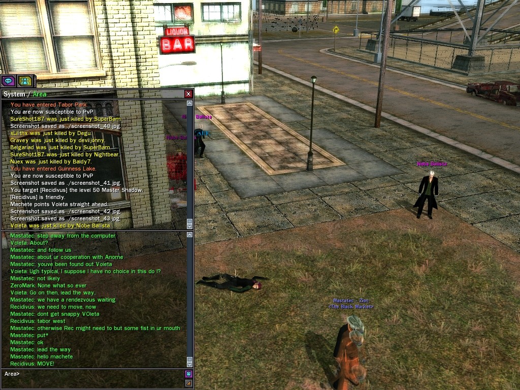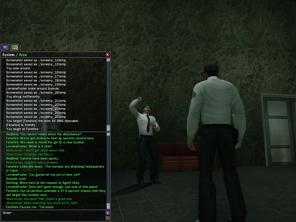 I know it isn't easy painting a target on your forehead just to try to take some heat off your fellow operatives, so I'd like to thank everyone who helped draw fire in Tabor West. Thanks to you, Fenshire, RedBindi, Deffdog, and Suezuki were able to rescue two people who were arrested by the Machines because their names were found in our captured recruiting lists--people whose only "crime" was realizing that something isn't right with what they thought was the world. Ghost