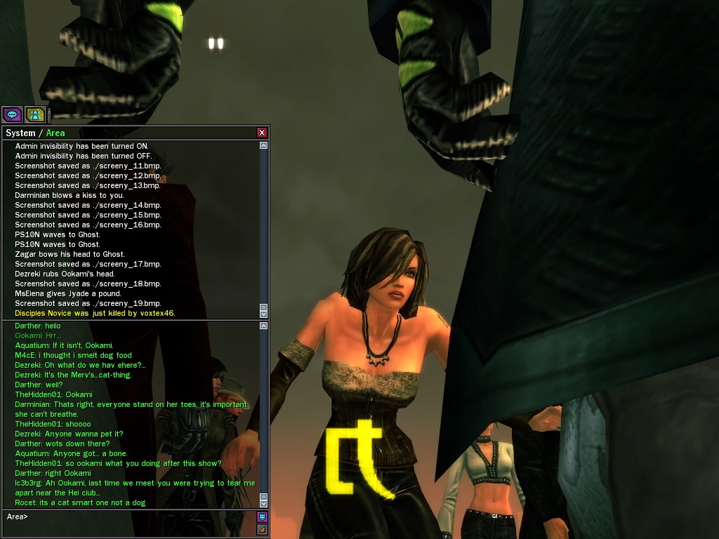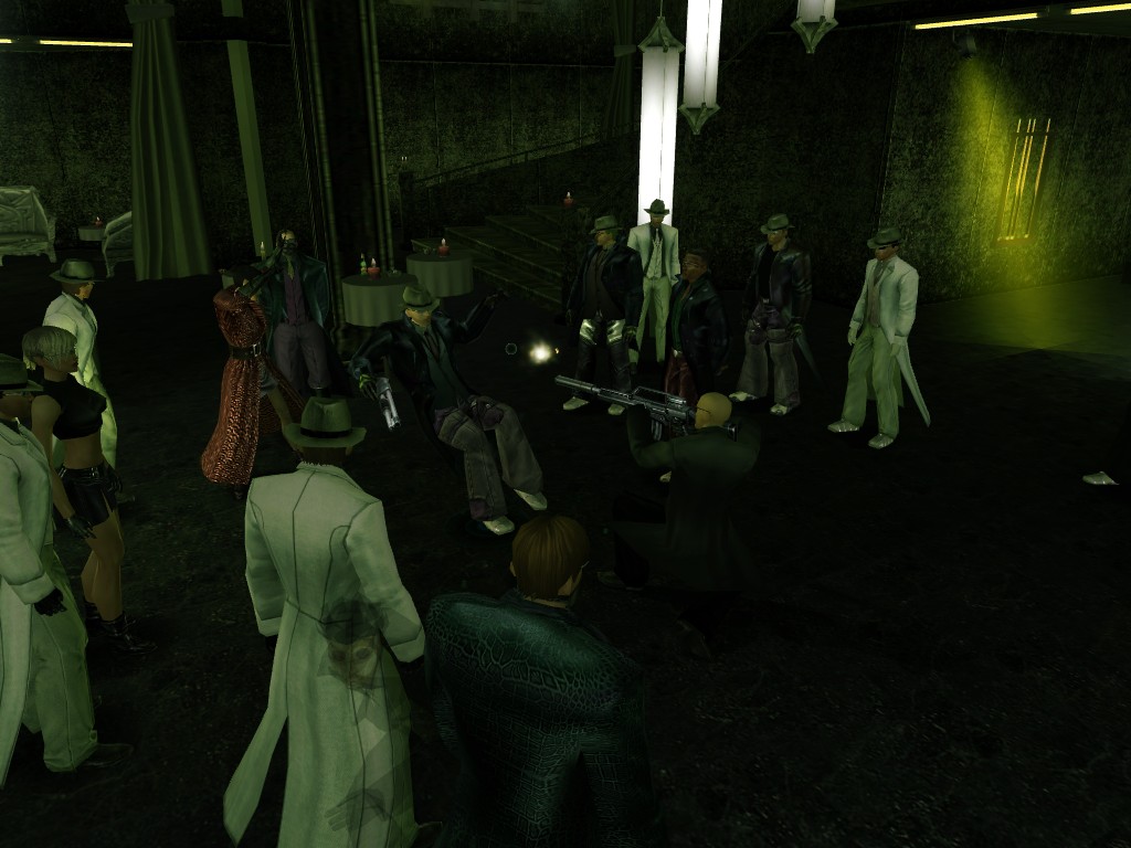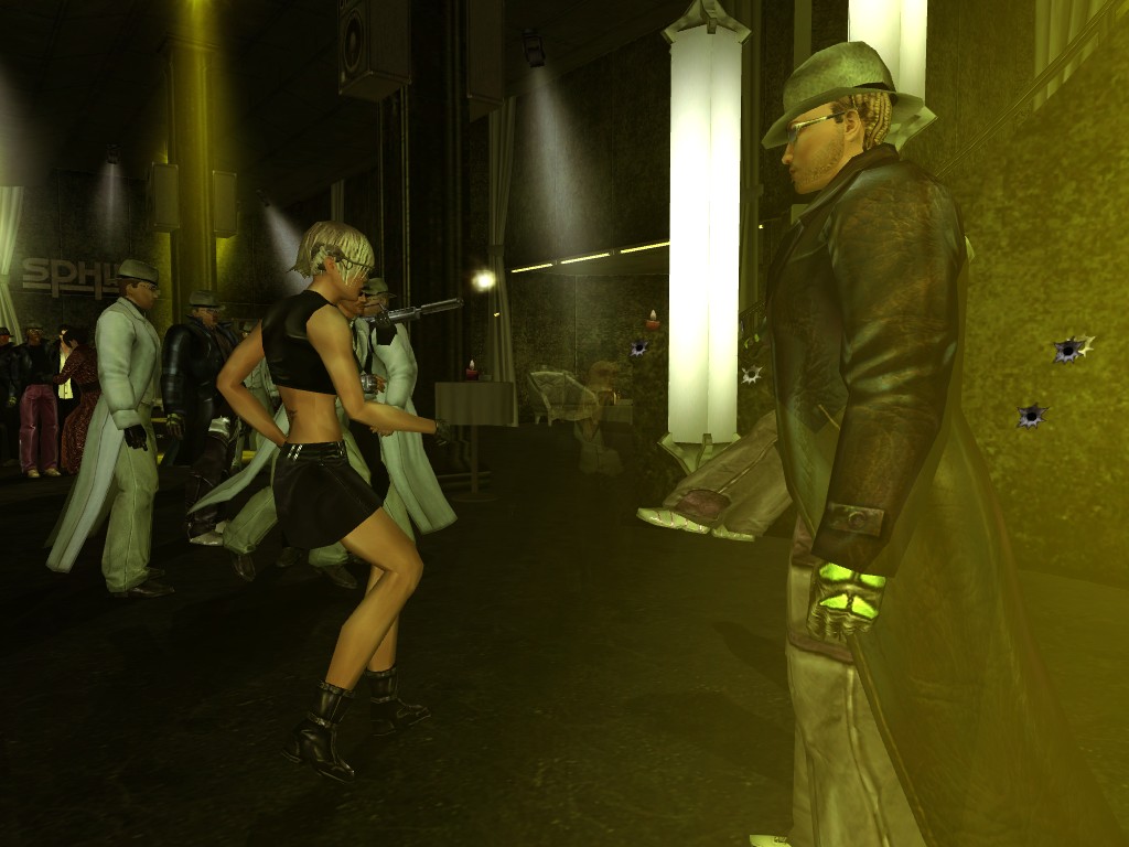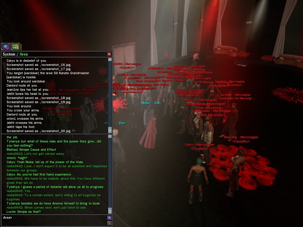 She's going to be the death of me. Just a few days after she's out of Anome's prison, and she wanted to go face about fifty of the top Mervs. "To thank them," she said. "No *CENSORED* way," I told her. "You can barely walk, let alone take on that many of them if something goes wrong." "I won't have to." She smiled at me. "You'll be watching my back." I pleaded with her to let us take more backup into the club, but she wouldn't hear it. Didn't want there to be a chance for some kind of provocation spoiling her meeting. Finally, I had to give in; otherwise she might have gone and tried to do it solo. I'll give them this: they were pretty well behaved. The Merv must have told them to keep their claws sheathed. But some day they'll come out again... I just hope it doesn't happen when I'm standing with Niobe in the middle of a room full of them.