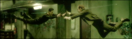 As the Agents began to pound on the door, she leapt through the window, rolling across the sidewalk onto the street. As the driver of an oncoming taxi cab slammed his brakes, violently swerving to avoid her, she jumped again, rolling on top of the roof of the car and opened fire at one of the Agents that emerged from the building. The pedestrians in the otherwise quiet Mannsdale neighborhood scattered or fell to the ground, trembling. The Agent's form became a blur, dodging round after round of ammunition as the others joined him.