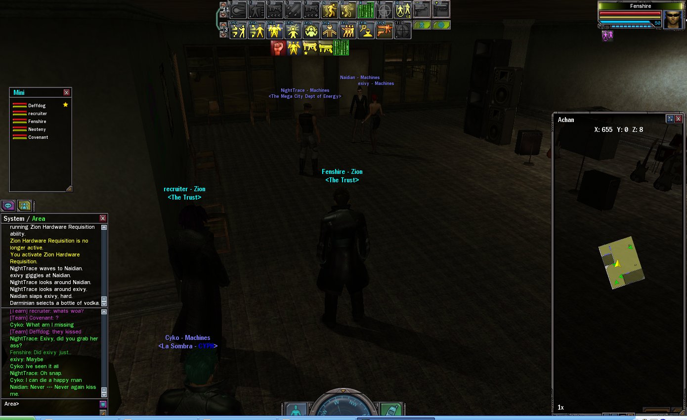 Ah.. sad, but true. Happy 4th birthday though. Four years ago marks the day I not only logged into MxO for the first time, it was my first MMO and my first PC game (never heard the word 'noob' before). Prior to MxO, I didn't own a computer and was mostly a console boy. When I heard on the Revolutions DVD that there would be a Matrix online videogame, I put it in my budget to start saving up for a computer (didn't make a lot of money at the time). Managed to get my computer a few days before MxO went live and got my pre-order for it (although, never got beta hyperjump or beta clothes, something the CSRs didn't seem to want to help me with :/). Fenshire wasn't actually my first character. I wanted to have the name Jester, but it seemed as if it were taken. So, after trying different synonyms for 'humor', I came up with the name Jocularity. I first logged into Method. Don't know why, just picked a server at random. I played for about a week, and decided that I really didn't like the community there. (Sorry guys!) Most of the people seemed like they were snobby beta vets, and it was hard trying to get anyone to talk to. Most of them seemed to be off doing their own thing, and couldn't be bothered with a poor noob. So, I deleted Jocularity and picked a server with a low population, Regression. Fell in love immediately. Very few beta folks, a very strong RP crowd, and mostly other noobs like me. Took me awhile to pick a name for that too... I wanted Hauk (old D&D character I had was named Hauk Fenshire), but it was taken. So, I ended up picking Fenshire. Ah, memories. When the game was fun, and bright and shiny and unlike anything I'd ever experienced before.