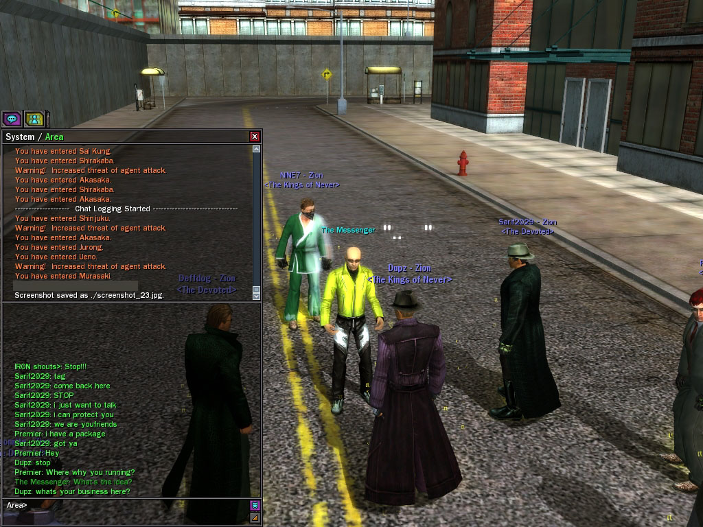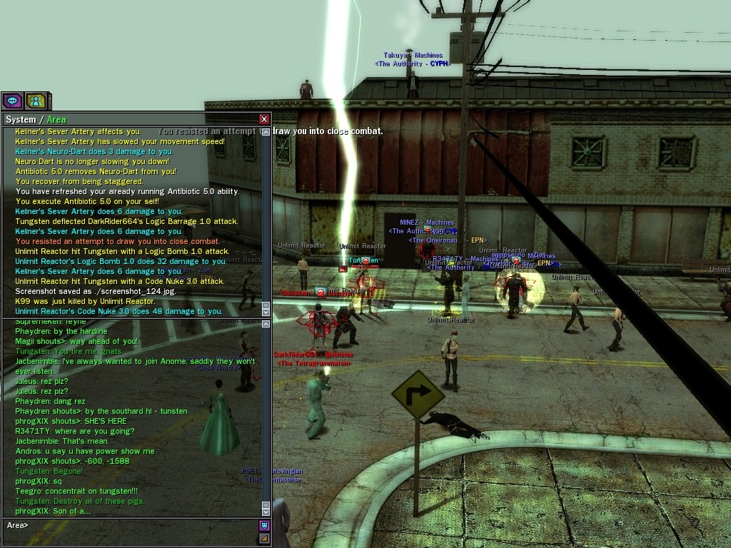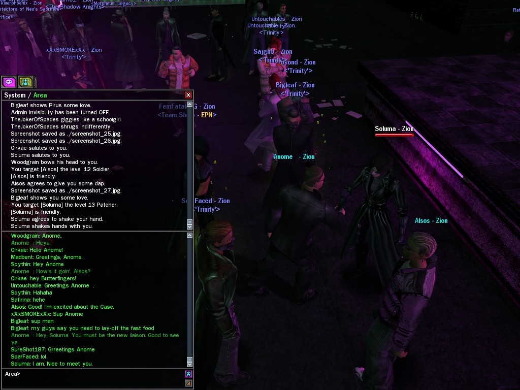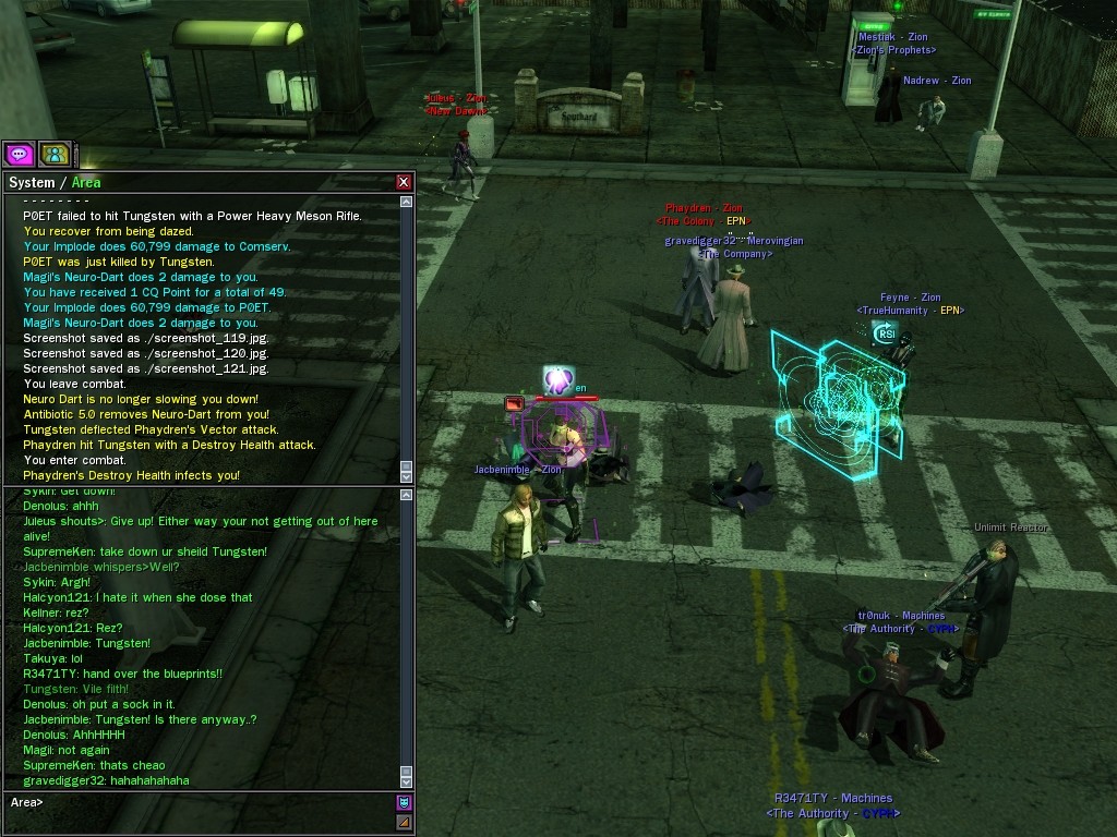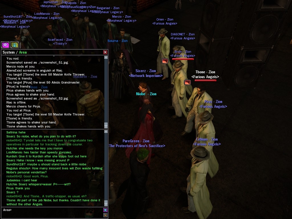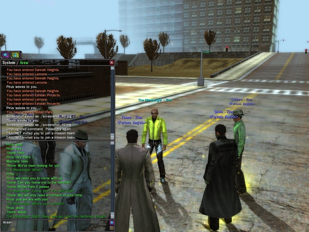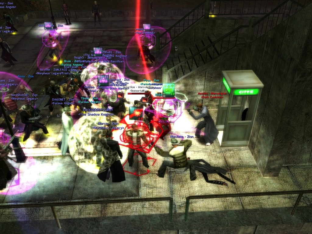 Operatives responded in large numbers to an outbreak of the Smith Virus in Downtown. Although the strain of the massive battle literally brought the simulation to a halt at one point, the operatives finally prevailed, with Ventio taking the shot that finally brought the virus down. Smaller manifestations of the virus throughout a large part of the district followed, but at this time we believe that operatives have the situation well in hand. Tyndall Mission Control Zion Command