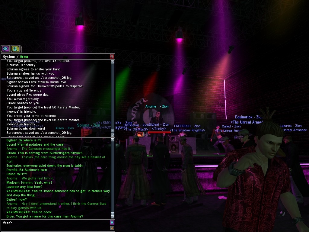 Attention, all operatives. If you see Anome, please have him contact Zion Control immediately. I... Er... There is reason to believe that he may be at a club in the city.