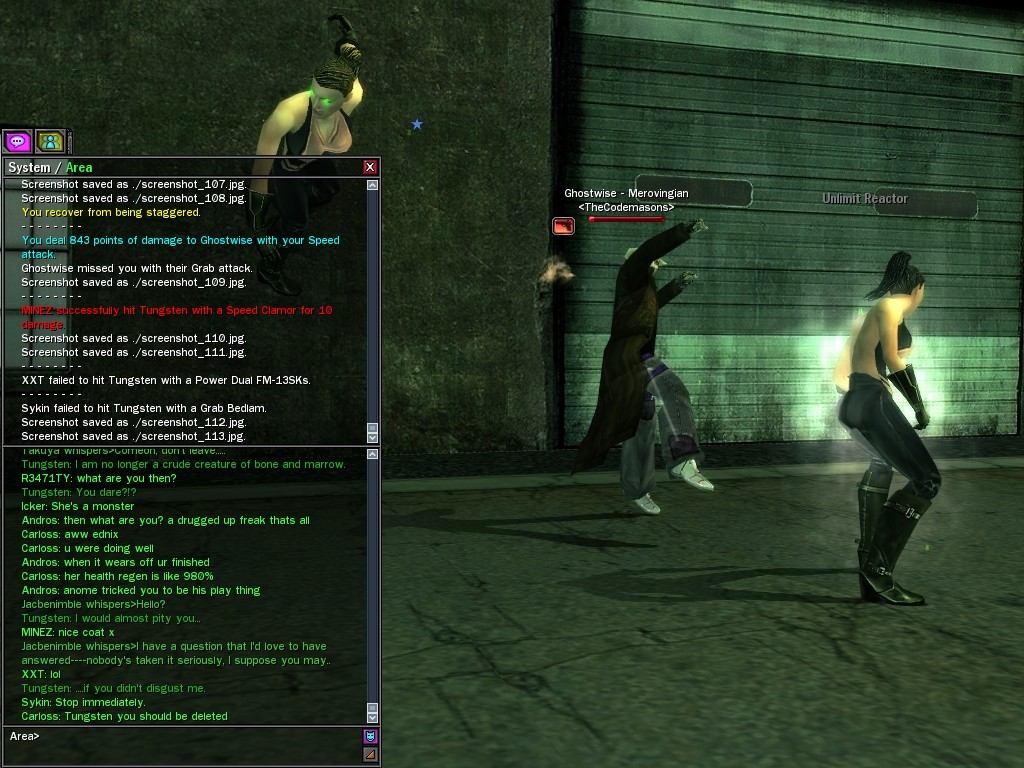The Brethren encountered the operative known as "Father Jonas" at the First United Church in Sobra Shores. Jonas warned of an unusual rash of attacks by the local Demon Legion gang, and led the operatives to the gang's leader, Jezebeth, who they found in Club Daemon. Jezebeth claimed that the gang was being controlled by an outside force, and operatives escorted her through waves of attacks to the apartment building at the south end of the neighborhood, where they discovered one of the intruder's powerful override programs. Our warriors engaged in a fierce battle against the override program and the Demon Legion members it had dominated. The operatives eventually carried the day, and the Accelerator program itself was deleted by operative Aquilae. It could become very dangerous in the city if the intruder's programs begin overriding local elements en masse as they did during this Sobra incident. Please remain vigilant for any signs of widespread override use. Tyndall Mission Control Zion Command