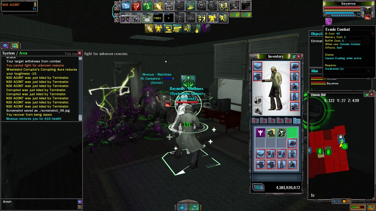 No sense in holding these things over people's heads anymore. It's unfortunate that the holiday RSI captures are turned off (it would take literally one change of a 5 byte sequence in gameobjects.pkb for them to enable it, replace the 'inactive' halloweenmaskability with the rsicaptureability, and grant permissions to character's ability grant trees, since that's uhhhhh validated on execution now >_> . So if there are things you're looking to do... perhaps you have this visualization of you running around as the BIP, with eyes in the sky or DOTD flies raining down. Maybe you want to turn all Zero One soldiers into CSRs, and AOE nuke hundreds of CSRs. Maybe you want to wear a dress as a guy. Or have WINGS. Whatever. Maybe every time you /orangutan you actually want to do a barrel roll. Do a barrel roll? I'm gonna post some other fun stuff in the useropts thread too. (One fun side effect of changing models is that if you turn people's overcoats into wings or such, you can watch them stack right in front of you. EZ) Instructors Bayamos and Seymour bring you some goodies. The topics for our seminar today are: TSEC (weather, .tsec) [make the sky dotd, or blue sky, or winter, or whatever] Geometry (.mga) [change the geometry of models] Textures (.txa) [change the texture of models] Skeletons (.ska) [character skeletons @_@] Models (.moa) (composite mga/txa, when both are changed the model 'should' change) Props (.prop) [fountains, that stack of pods, etc] FX attachment [make your character have red csr code, black kunoichi shadow, etc] Animations (.ana) UI (.uia) [heyyyy it's a hovercraft ui] Useropts, python, hotbar hex, etc.... I'm writing a how-to document, if you have a specific request you can message me. (Admins, no sense in being party poopers since it's all ending, eh? this is just for other people to have harmless fun which doesn't impact anyone but what they see on their screen. I don't think you're going to take the effort to enable holiday RSI captures or anything, so you might as well let this pass, and let people collect a few memories before the end. Or 1984. Meh.)