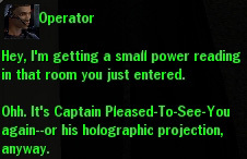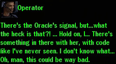Holographic Projection Congratulations. This is what is called "a diversion." By the time you hear this message, my commandos will already be storming the Oracle's apartment in Mara. End transmission. Aquatium *CENSORED*, son-of-a...