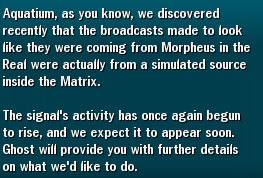 Aquatium Someone is beeming it from inside the Matrix, but who? I went ahead to meet Ghost.
