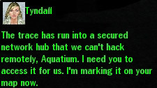 Aquatium Ok, we have friendlies at this location or possible hostiles? Either way, mission will be completed. I arrived at the secure network hub, it was a bluepill office, I searched some of the computers, trying to get what intel I could.