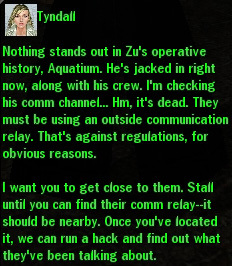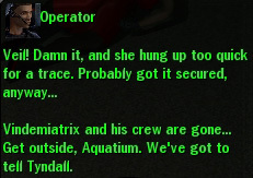 Aquatium I had the key and accessed the terminal. I got the intel and relayed it back to Tyndall.