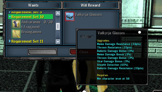 Firstly, awesome. I love the new items you can get, those glasses rock! A bug to note, Trades 5 and 6 from Dr Martin are both female earpieces, if you follow the loot for the others, they go female/male etc.