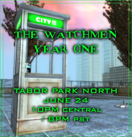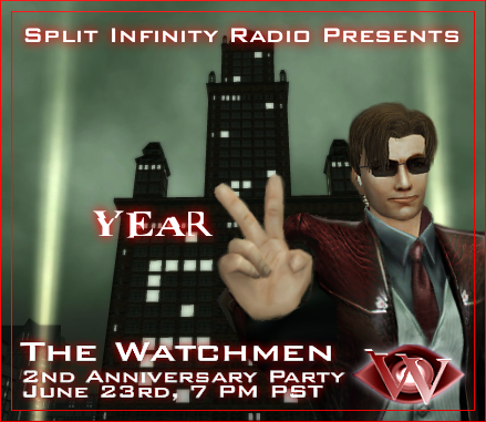 Welcome, one and all, to the second anniversary of The Watchmen. All are invited to join us in celebrating our second year of working with the System. The radio gods at SI Radio will be hosting the event and one can expect games, prizes, general merriment and possibly nekkedness. (Hey, it is an MxO party afterall) The party will be held on Saturday, June 23rd at 7PM PST and will fittingly be located on the roof of the Machine HQ behind Tabor Park West. Hope to see you all there! www.mxowatchmen.com www.siradio.fm